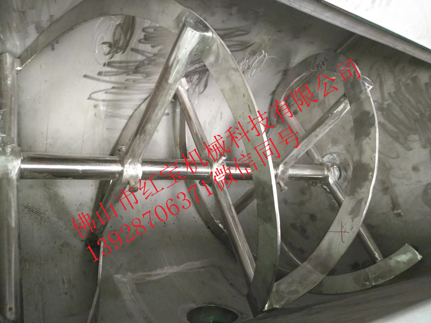 1、主軸上布置雙層螺旋葉片,內部螺旋將物料向外側輸送,外部螺旋將物料向內部聚集。物料在雙層螺旋帶的對流運動下,形成一個低動力高效的混合環境。本混合物料能夠在較短時間內均勻混合無死角。